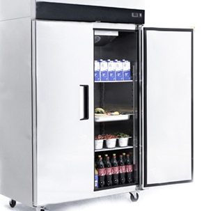 STR2R-4HG-HC Refrigerador SPEC SERIES®, Reach-in, dos secciones, frontal y laterales de acero inoxidable, (4) medias puertas de vidrio con cerraduras, bisagras de leva de leva, control de temperatura digital, interior de acero inoxidable, (2) kits interiores, luces LED de interior , Ruedas de 5 «, refrigerante de hidrocarburo R290, 1/2 HP, 115v / 60/1, 5.9…