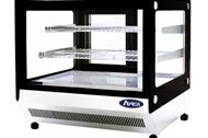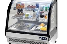 Vitrina refrigerada curva de mostrador CRDC-35 Vitrina refrigerada de mostrador curva. 110 Lt de capacidad. Frente de doble cristal curvo. Laterales de cristal. Estructura inferior fabricada en a.inox. 430. Exterior en acero tipo 304. 2 puertas corredizas de cristal. 2 repisas de alambrón. Iluminación LED. Enfriamiento por aire forzado. Deshielo automático y manual. 1 condensador…