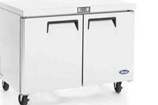Mesa de Trabajo Refrigerada MGF8410GR * MRT-152-2P Mesa de trabajo con base refrigerada, con 2 puertas sólidas. 17.8 pies³ de capacidad. Frente, costados e interior en a.inox. 430. Respaldo posterior externo en a.alum. Interior con curvas sanitarias NSF. 2 puertas sólidas con cerradura. 2 parrillas plastificadas en su interior. Enfriamiento por aire forzado. 1 condensador…