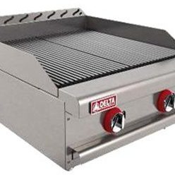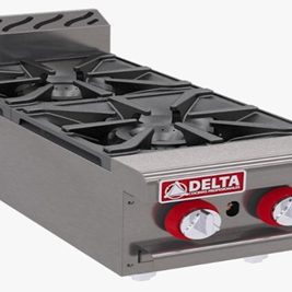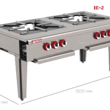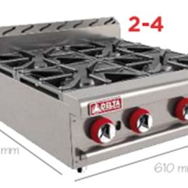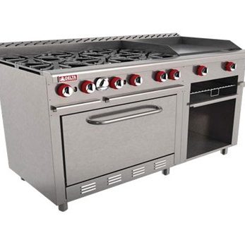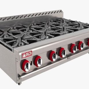 - 6 quemadores abiertos octagonales con tapa desmontable en hierro fundido de 30,000 B.T.U./h cada uno.